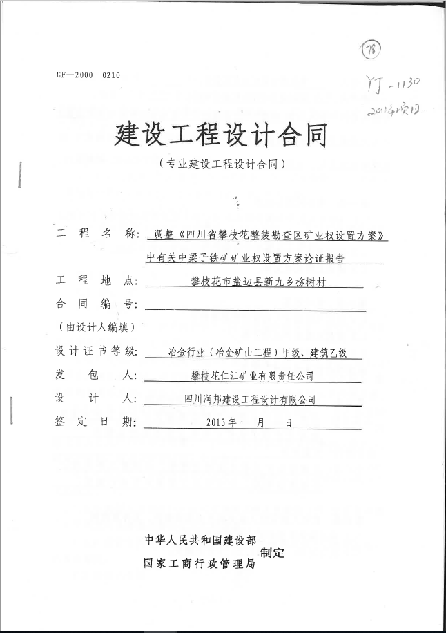 調(diào)整《四川省攀枝花整裝勘察區(qū)礦業(yè)權(quán)設(shè)置方案》中有關(guān)中梁子鐵礦礦業(yè)權(quán)設(shè)置方案論證報(bào)告