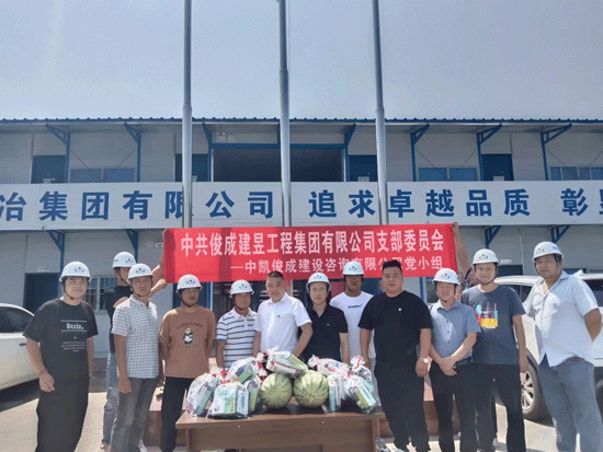 在中國共產(chǎn)黨成立102周年之際,俊成公司黨支部組織開展了赴基層走訪慰問活動。2023年6月30日,公司黨支部書記李發(fā)建帶領(lǐng)相關(guān)人員到項目一線看望慰問員工,向大家送去了黨組織的關(guān)懷和公司班子的問候。